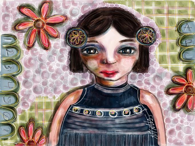 Keywords: girl art woman face female hair young portrait color person lady people design drawing human head
