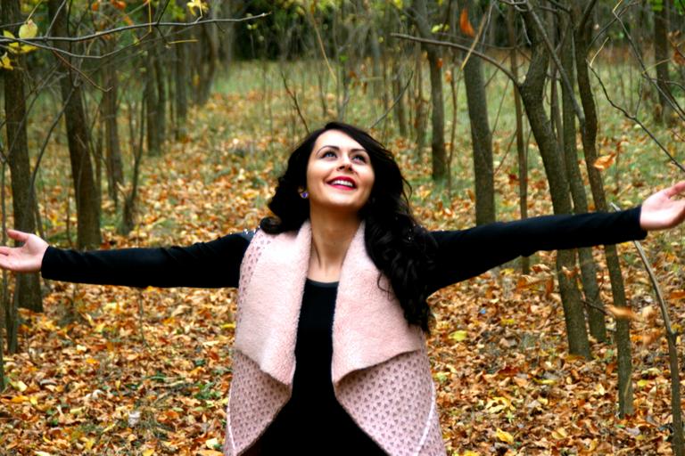 Keywords: girl autumn yellow leaves beauty happy smiling