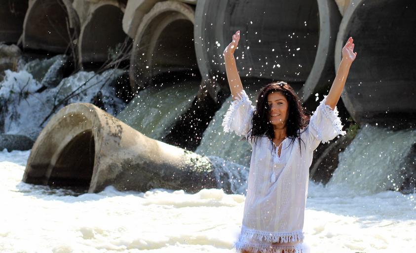 Keywords: girl cascada white shirt sensual summer waves water nature seduction beauty brunette