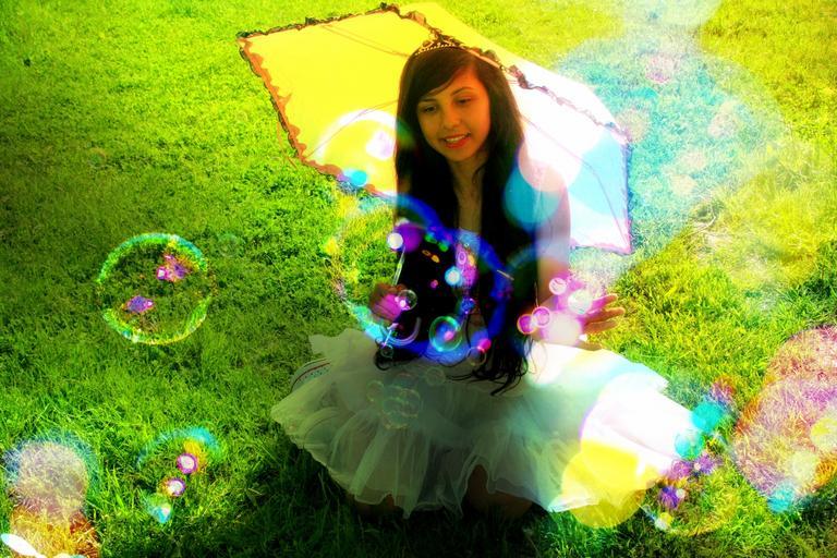 Keywords: girl child bubbles princess umbrella portrait joy summer