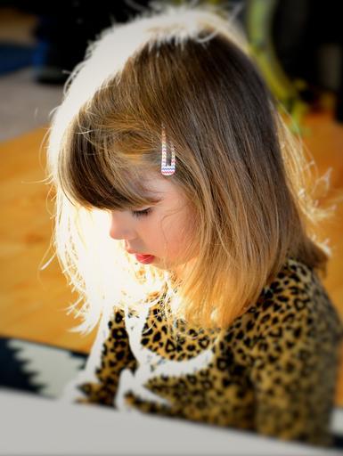 Keywords: girl child face sunshine concentration blond