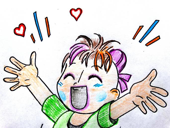 Keywords: girl child laugh happy joy of life love fun joy motivation air jump sketch drawing color image paint over the moon