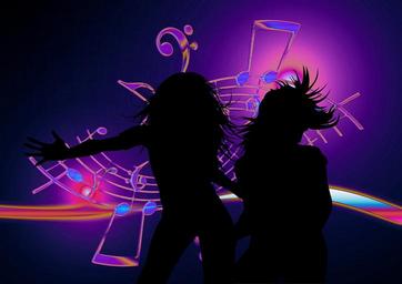 Keywords: girl disco nightclub party music sound concert musician tonkunst sheet music listen cute female human radio relaxation woman boy dance staves lines melody piece of music composition compose colorful color black celebrate good mood