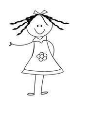 Keywords: girl doll dress ribbon flower outlines stickman stick figure matchstick man