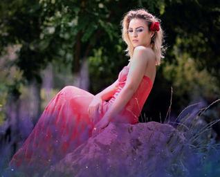 Keywords: girl dress lavender blonde portrait flower red sensual seductive
