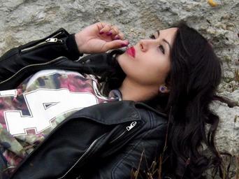 Keywords: girl fashion leather jacket black rock beauty brunette seductive