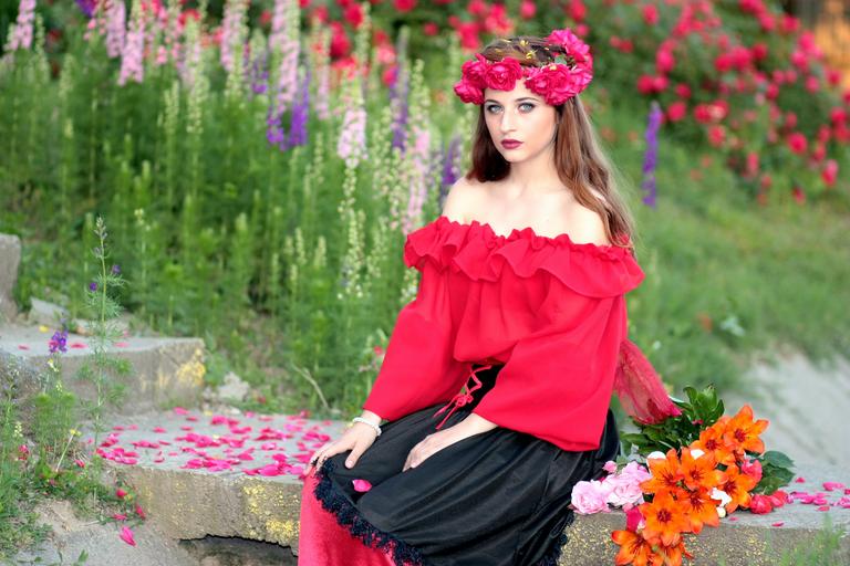 Keywords: girl flowers wreath roses red beauty