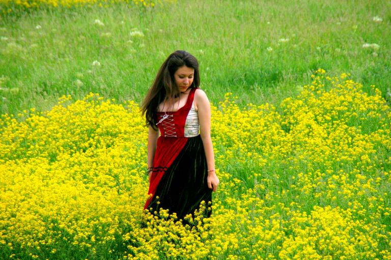 Keywords: girl flowers yellow beauty nature field