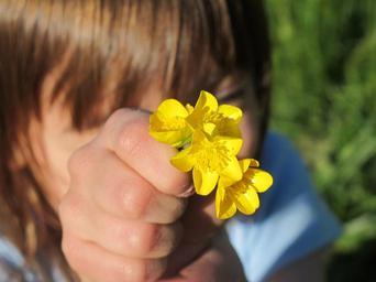 Keywords: girl flowers yellow young youth show share give female child cute person fun bouquet