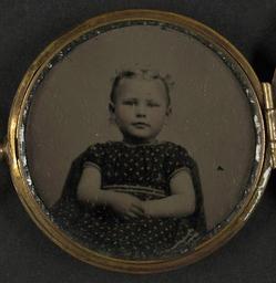 | Keywords: library of congress libraryofcongress dc:identifier=http://hdl.loc.gov/loc.pnp/ppmsca.27485 dc:identifier=httphdllocgovlocpnpppmsca27485 xmlns:dc=http://purl.org/dc/elements/1.1/ xmlns:dc=httppurlorgdcelements11 child locket jewellery jewelry dress jewelrydress people indoor round [Girl from: Two unidentified portraits of girl and boy in locket] [between 1861 and 1865] 2 photographs in 1 case : tintype, hand-colored ; 4.8 cm diameter (case) Notes: Title devised by Library staff. Case: Metal locket with two soldiers firing a cannon. Gift; Tom Liljenquist; 2010; (DLC/PP-2010:105). Subjects: Children--1860-1870. Format: Lockets--1860-1870. Portrait photographs--1860-1870. Tintypes--Hand-colored--1860-1870. Rights Info: No known restrictions on publication. Repository: Library of Congress, Prints and Photographs Division, Washington, D.C. 20540 USA, hdl.loc.gov/loc.pnp/pp.print Part Of: Ambrotype/Tintype filing series (Library of Congress) (DLC) 2010650518 Liljenquist Family collection (Library of Congress) (DLC) 2010650519 More information about this collection is available at hdl.loc.gov/loc.pnp/pp.lilj Persistent URL: hdl.loc.gov/loc.pnp/ppmsca.27485 Call Number: AMB/TIN no. 2609 [Girl from: Two unidentified portraits of girl and boy in locket] [between 1861 and 1865] 2 photographs in 1 case : tintype, hand-colored ; 4.8 cm diameter (case) Notes: Title devised by Library staff. Case: Metal locket with two soldiers firing a cannon. Gift; Tom Liljenquist; 2010; (DLC/PP-2010:105). Subjects: Children--1860-1870. Format: Lockets--1860-1870. Portrait photographs--1860-1870. Tintypes--Hand-colored--1860-1870. Rights Info: No known restrictions on publication. Repository: Library of Congress, Prints and Photographs Division, Washington, D.C. 20540 USA, hdl.loc.gov/loc.pnp/pp.print Part Of: Ambrotype/Tintype filing series (Library of Congress) (DLC) 2010650518 Liljenquist Family collection (Library of Congress) (DLC) 2010650519 More information about this collection is available at hdl.loc.gov/loc.pnp/pp.lilj Persistent URL: hdl.loc.gov/loc.pnp/ppmsca.27485 Call Number: AMB/TIN no. 2609 |