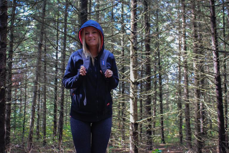 Keywords: girl hiker outdoor journey joy forest trees woods nature trek backpack travel adventure