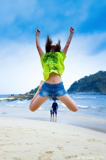 Keywords: girl jump woman happy joy beach phuket thailand sea tourist ocean lifestyle holiday