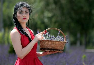 Keywords: girl lavender brunette blue eyes flowers beauty nature