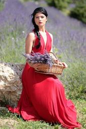 Keywords: girl lavender dress brunette blue eyes flowers beauty nature