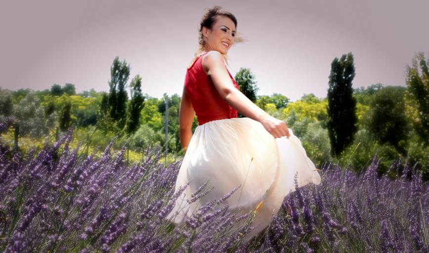 Keywords: girl lavender mov blonde dress beauty flowers nature