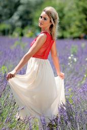 Keywords: girl lavender mov blonde dress beauty flowers nature
