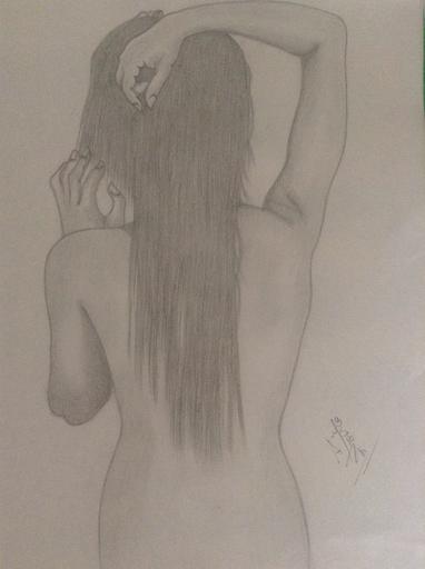 Keywords: girl nude back drawing pencil art paper