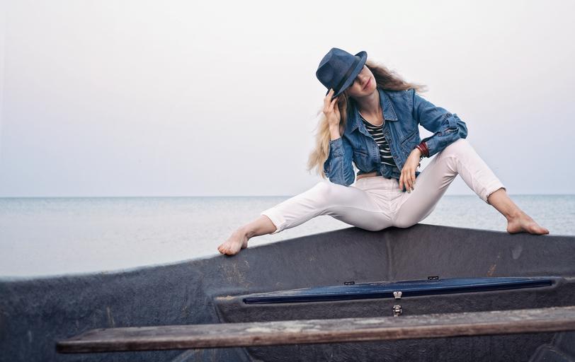 Keywords: girl one boat horizon summer sea hat sky wind calm bliss silence tranquility privacy the lone happiness