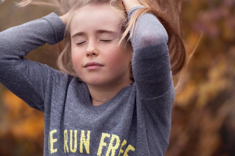 Keywords: girl out nature autumn face portrait in motion wind closed eyes close person human autumn colours