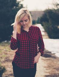 Keywords: girl portrait beauty innocence nice plaid blond hair