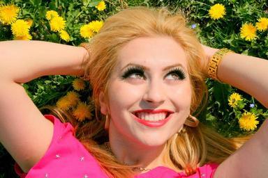 MAKE A MEME View Large Image girl portrait pink flowers seduction smile beauty blonde