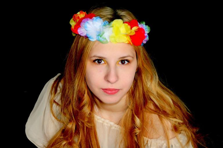 Keywords: girl portrait princess blond hair wreath eye brown story nice