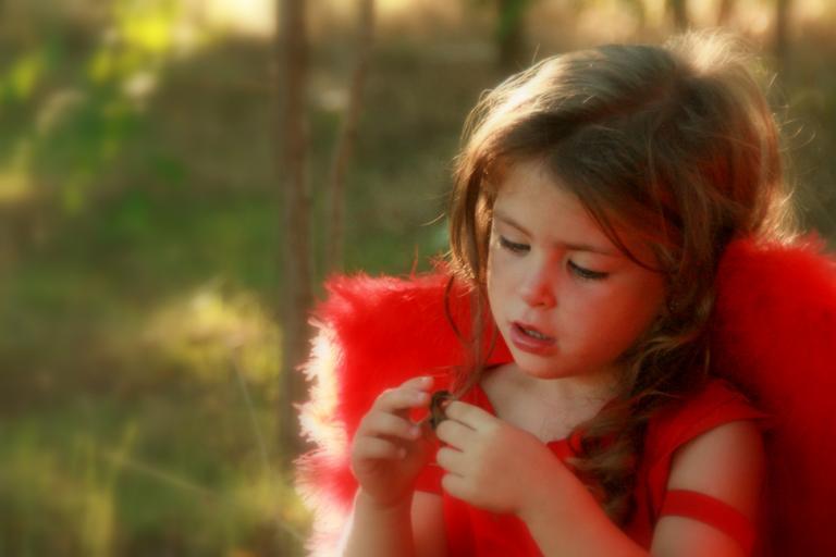 Keywords: girl red angel wings portrait child forest