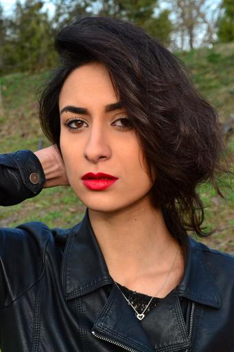 Keywords: girl red lips expression dramatic outdoor hair model portrait female attractive style