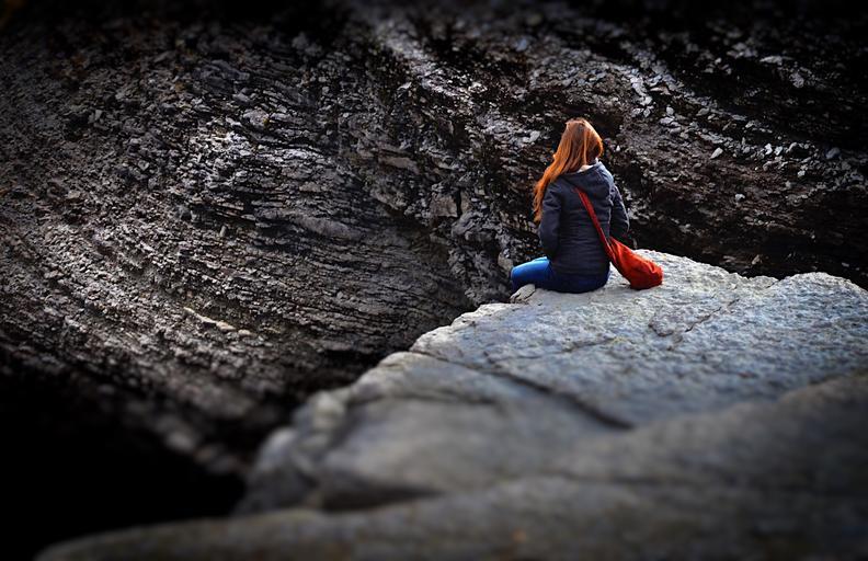 Keywords: girl sitting on the edge only solitude ginger nature rocks mountains