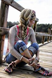 MAKE A MEME View Large Image girl sitting tailor seat cross-legged portrait pier blond hair braid sandals