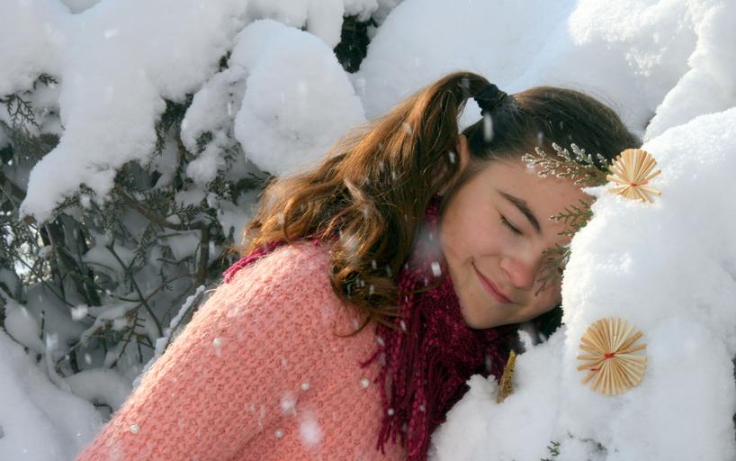 Keywords: girl snow sleep winter stars white smile