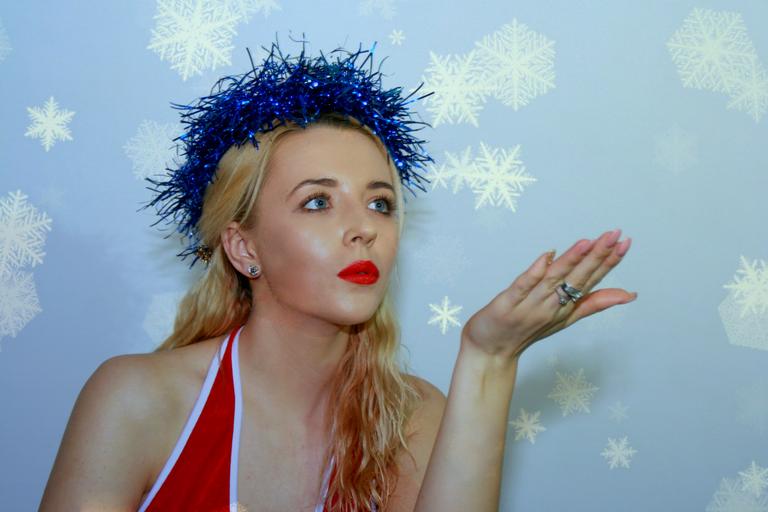 Keywords: girl snowflake winter christmas holidays tinsel wreath