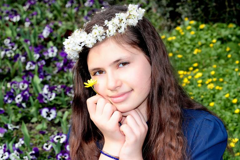Keywords: girl spring wreath flowers beauty