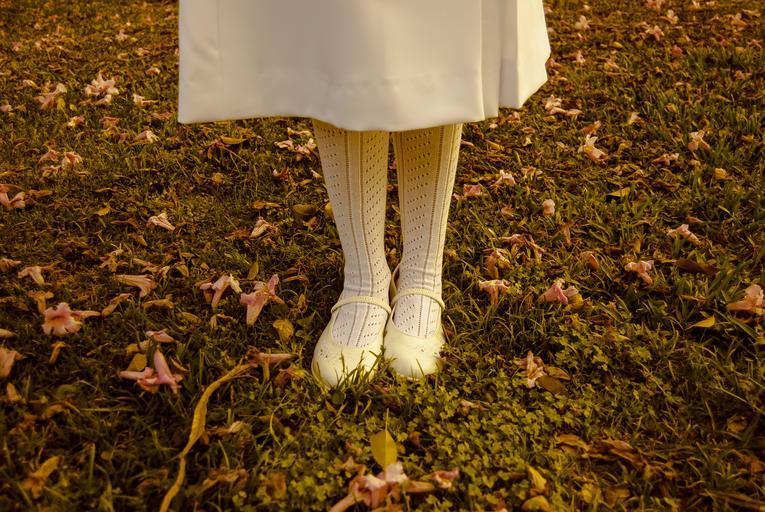 | Keywords: white dress whitedress white shoes whiteshoes white socks whitesocks grass ground leaves lawn background pattern texture girl female woman child public domain publicdomain License: Public Domain Dedication (CC0) Source: Unsplash License: Public Domain Dedication (CC0) Source: Unsplash  |