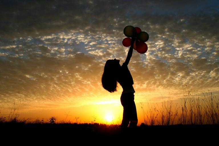 Keywords: girl sunset balloons sun sky clouds silhouette shadow red
