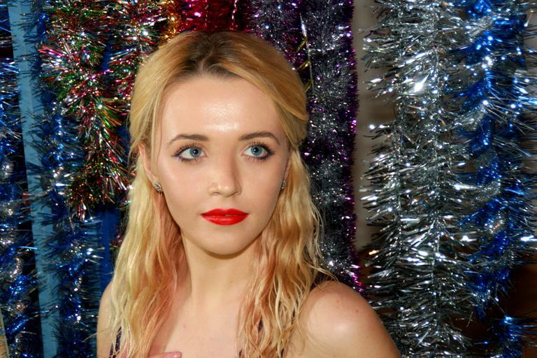 Keywords: girl tinsel holidays shine christmas blonde portrait