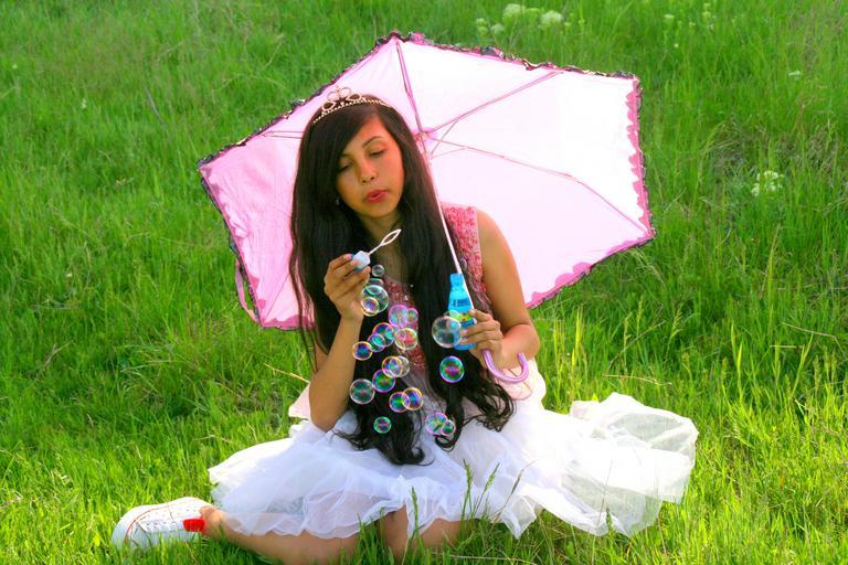 MAKE A MEME View Large Image girl umbrella grass soap bubbles dress pink