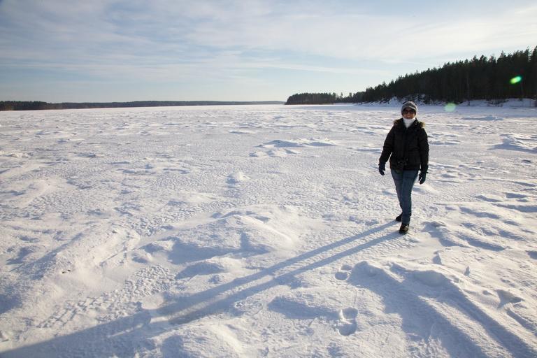 Keywords: girl walking snowy winter season woman cheerful happy smiles smiling lady laughing jackets hats young female white icy ice crystals ground frozen freezing temperatures cold climates weather freezes trees bright sunny day lifestyle outdoor