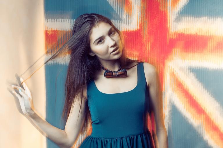Keywords: girl wall lily dress blue blur fashion woman pretty