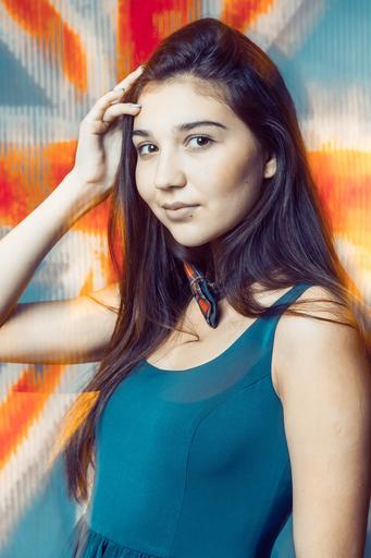Keywords: girl wall lily dress blue blur fashion woman pretty