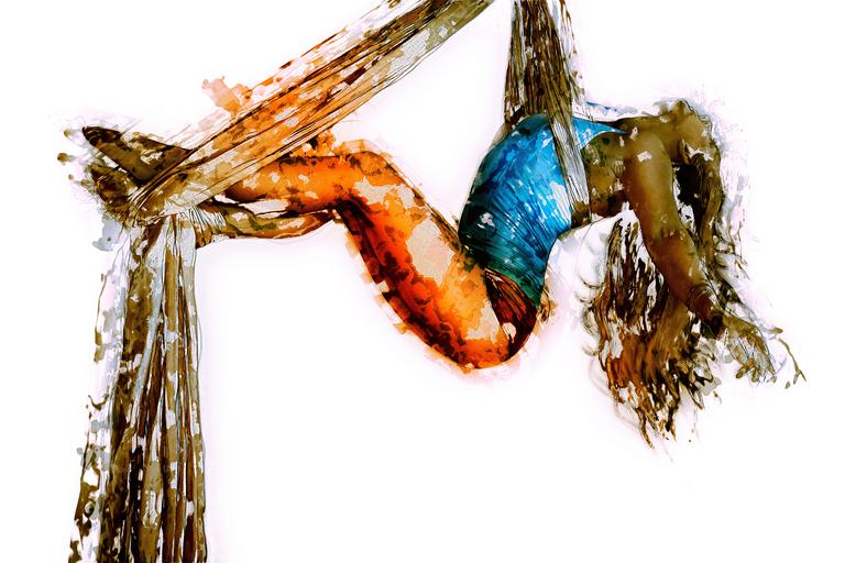 Keywords: girl watercolor photoshop long hair stunt athlete workout movement suspended female swing well-being freedom sport athletic preparation physical activity gym artist