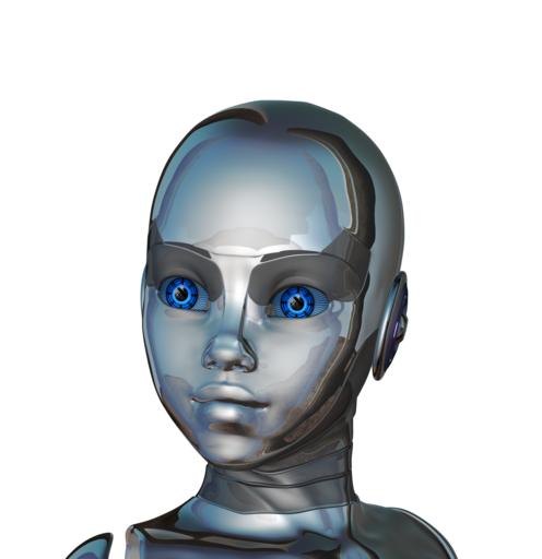 Keywords: girl woman face eyes close-up robot cyborg android robotics future artificial intelligence blue silver isolated sci-fi science fiction