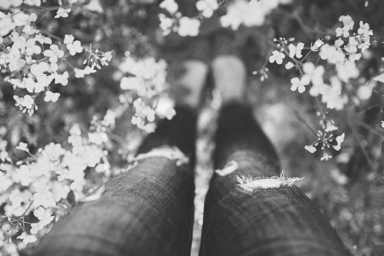 Keywords: girl woman standing stand legs jeans bw black&white vintage flowers nature summer spring pants