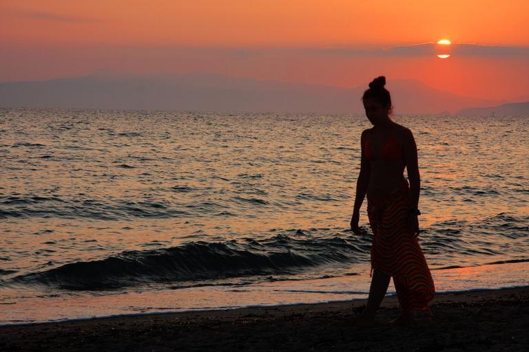 Keywords: girl women andara sunset sky red orange sun landscape italy sea beach