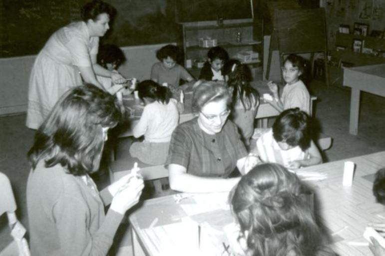 Keywords: doris lauterbach dorislauterbach betty kauffman bettykauffman marlboro girls club marlborogirlsclub marlboro youth center marlboroyouthcenter mennonite board of missions mennonite mission network voluntary service alberta marlboro mennoniteboardofmissionsmennonitemissionnetworkvoluntaryservicealbertamarlboro Caption: April, 1964. Marlboro, Alberta. Doris Lauterbach and Betty Kauffman 'cutting and pasting' with the Marlboro Girls Club which meets alternate Saturdays at the Marlboro Youth Center. (Girls are in grades 4 - 9). Citation: Mennonite Board of Missions. Photographs. Marlboro, Alberta Voluntary Service. 1963. IV-10-7.2 Box 1 Folder 20 Photo 13. Mennonite Church USA Archives - Goshen. Goshen, Indiana. Caption: April, 1964. Marlboro, Alberta. Doris Lauterbach and Betty Kauffman 'cutting and pasting' with the Marlboro Girls Club which meets alternate Saturdays at the Marlboro Youth Center. (Girls are in grades 4 - 9). Citation: Mennonite Board of Missions. Photographs. Marlboro, Alberta Voluntary Service. 1963. IV-10-7.2 Box 1 Folder 20 Photo 13. Mennonite Church USA Archives - Goshen. Goshen, Indiana. |