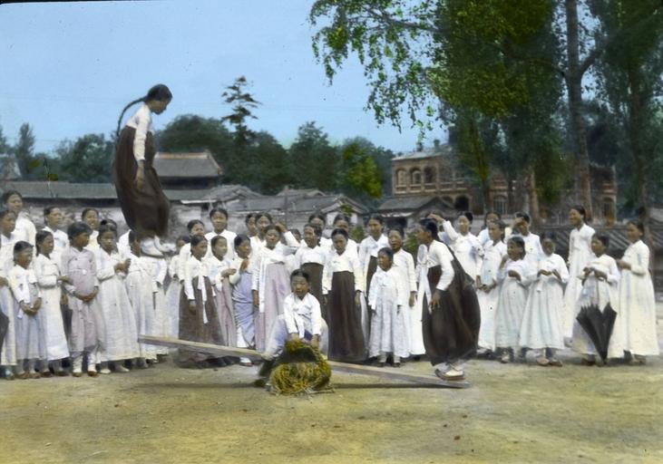 | Keywords: Girls on a jumping board, Korea, (s.d.) (Taylor nobookQ).jpg en <br> Girls on a jumping board Korea s d Girls on a jumping board Korea s d Date created 1908/1922 Publisher of the Digital Version University of Southern California Libraries Repository Name Methodist Church U S Legacy Record ID kda-m153 Photographer Methodist Episcopal Church Format photograph Archival file kda_Volume42/Taylor_nobookQ jpg Rights Neither the General Conference nor any General Agency of The United Methodist Church successor to the Methodist Episcopal Church claims any interest in the photos or images Filename Taylor_nobookQ Coverage date 1908/1922 Contributing entity University of Southern California Repository Address Nashville Tennessee Part of collection Korean Digital Archive Donor Taylor Ewing Bevard Type images Part of subcollection The Reverend Corwin Nellie Taylor Collection Geographic Subject Country Korea Compiler Taylor Corwin; Blood-Taylor Nellie 1908/1922 Methodist Episcopal Church http //digitallibrary usc edu/cdm/ref/collection/p15799coll48/id/782 PD-Japan-oldphoto Korean archive in the USC digital library Images from USC Digital Library uploaded by Fæ |