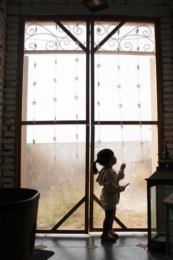 Keywords: girls silhouette backlighting window decoration child curious christmas
