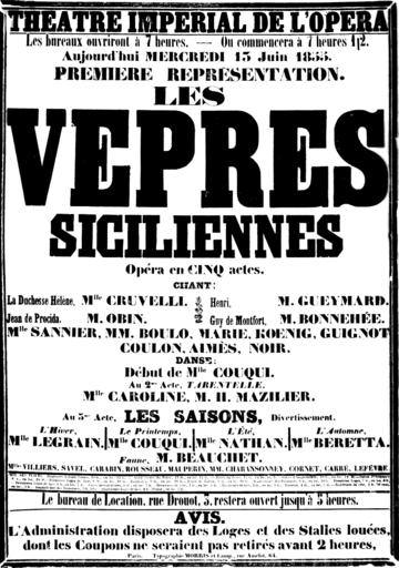View Original: | Giuseppe Verdi - Les Vêspres siciliennes - announcement for the first performance 1855.png (932x1324) | |||