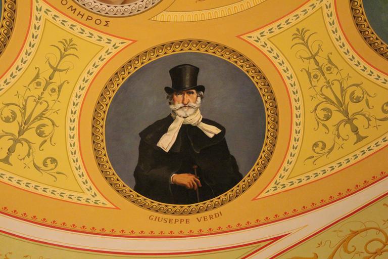 Keywords: Giusepper Verdi.JPG en Painting at the Ceiling of the Apollon Theater in Ermoupolis 2015-04-24 16 01 52 own Zacharias Mitzelos other versions cc-zero Uploaded with UploadWizard Apollon Theatre Syros
