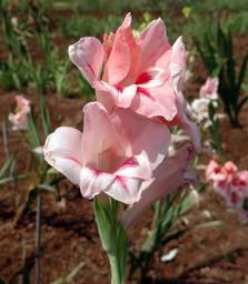 Keywords: gladiolus flower peach color floral petal bloom blossom flora plant garden